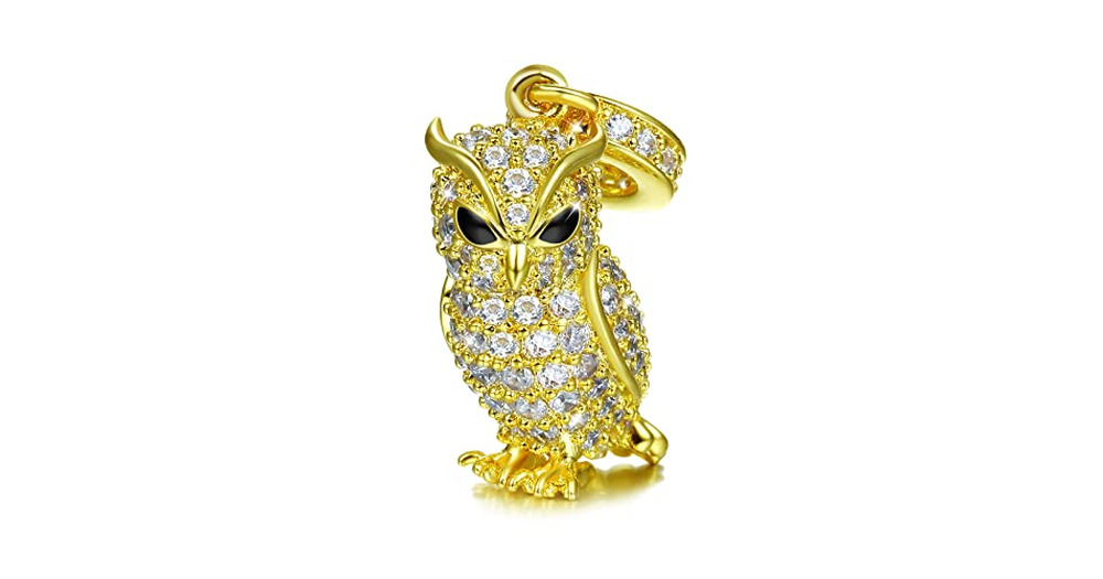GNOCE Owl Pendant Bead Charm With Bracelet S925 Sterling Silver Guarding You 18k Gold Plated Charm w