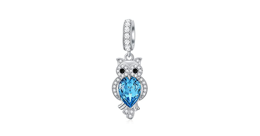 AOBOCO Owl Charm for Bracelet 925 Sterling Silver Dangle Charm with Crystal from Austria Owl Jewelry