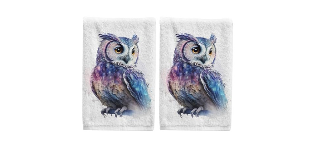 ALAZA Hand Towel Set of 2 100% Cotton Bath Towels Watercolor Owl for Bathroom Housewarming Decor Gif