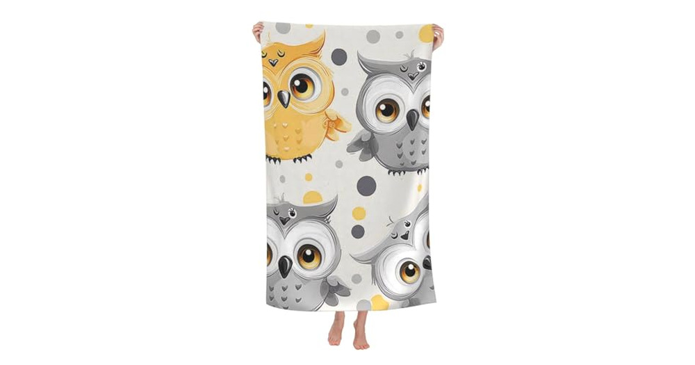 JTNWEC Animal Cartoon Owls Cute Prints Microfiber Bath Towel for Bathroom Gym Travel Spa Pool Highly