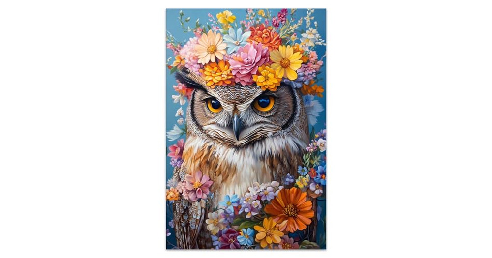 Bvkilrvc Unframed Canvas Prints Wall Art, Charming Owl And Flowers Modern Wall Art Painting Gift for
