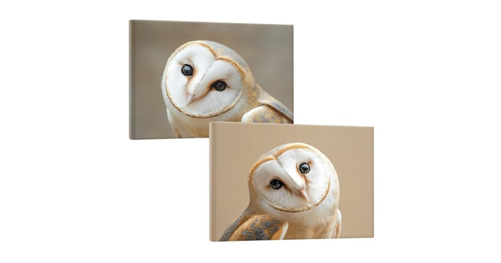 PHOENIX Serene Owl Wall Art Decor Set of 2 Framed Canvas Realistic Animal Portrait Calming Bathroom