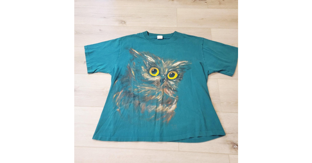 Vtg Single Stitch Painted Spotted Owl 90's USA Green Short Sleeve Shirt Medium