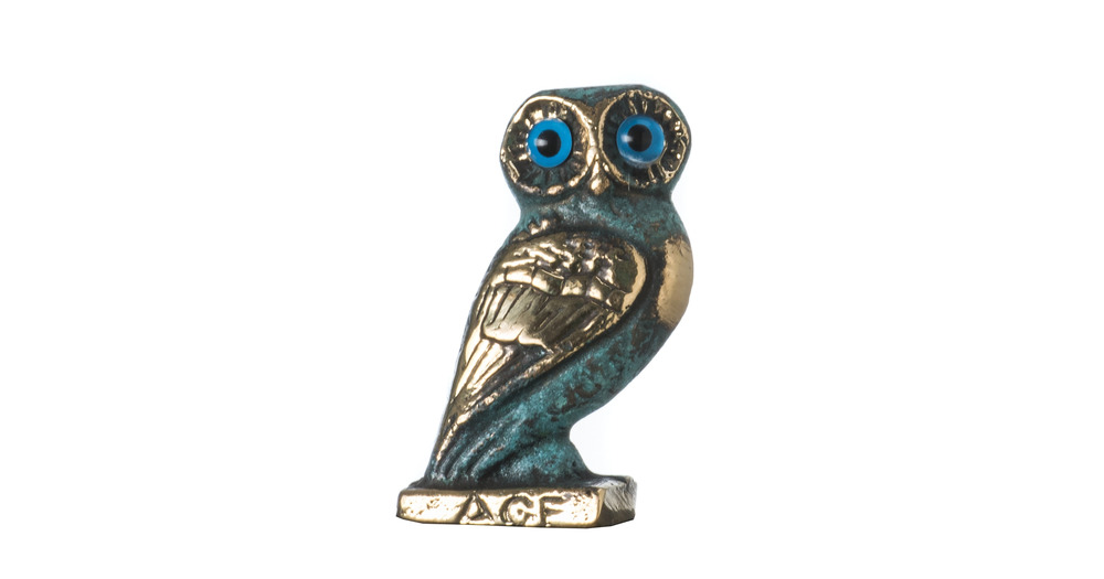 Owl of athens wisdom bronze sculpture ancient greek green-gold handmade 2.1 inches