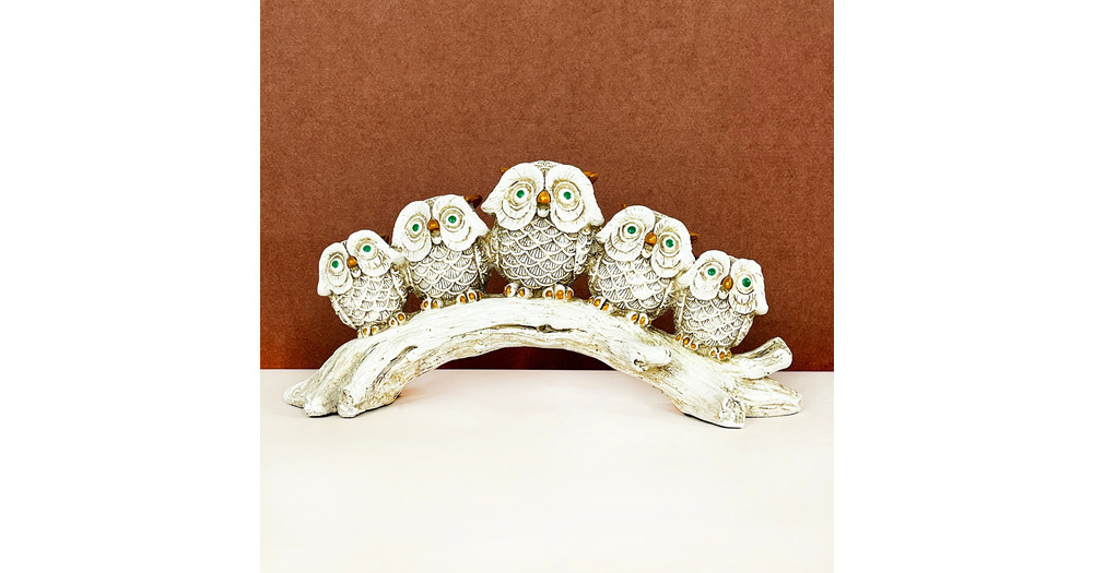 Handmade Owl Family Figurine on Branch – Rustic Owl Sculpture for Home Decor & Unique Coll