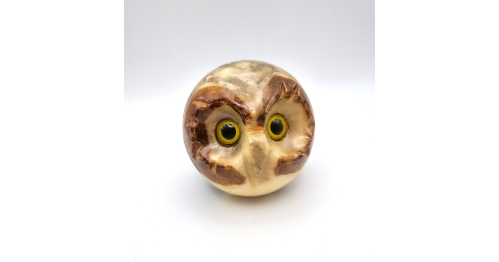 Vintage Alabaster Owl Sculpture: Mid-Century Modern Carved Stone Paperweight