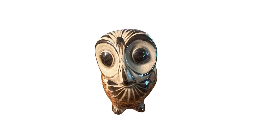 Vintage Art Pottery Owl sculpture~ Hand Painted & Signed Studio pottery figurine~ Original 70