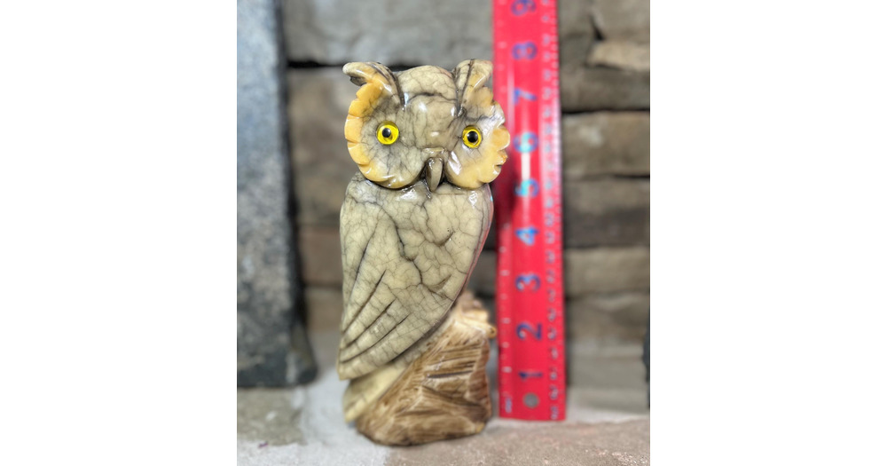 This Antique Marble Owl, carved in the 1920’s, stands perched on a log gazing out with its pie