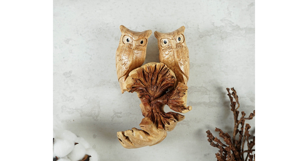 Hanging Wooden Owl, Romantic, Wood Carving, Couple Figurine, Handmade, Bird Ornament, Gift for Wife,