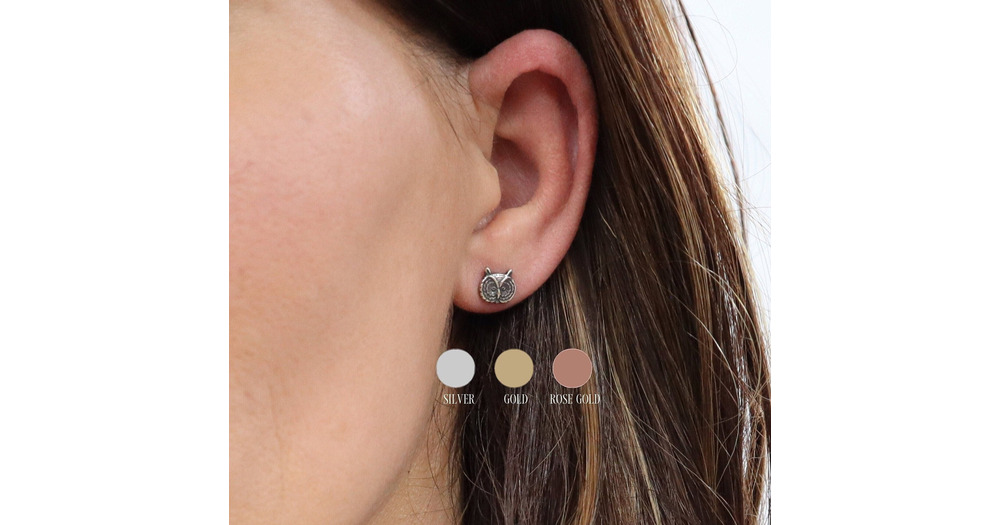 Small Owl Earrings, Stud Earrings, Surgical Steel Post Earrings with backs, Sterling Silver and Gold