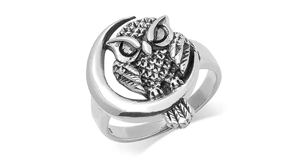 Sterling Silver Midnight Owl and Moon Ring - Size 6