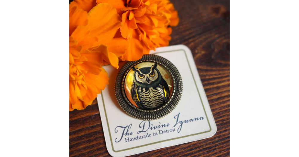 Retro Halloween Owl Vintage Inspired Pin Brooch