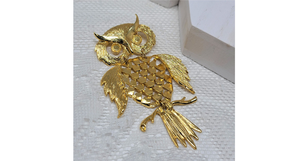 Jumbo Golden Owl Pin Brooch Bird Pin