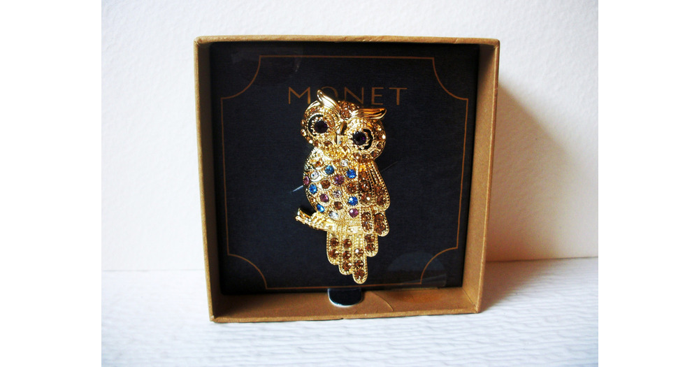 Gorgeous Vintage Brooch Pin MONET Rhinestone Owl Brooch  For Her  For Mom 122020 Gift For Her Wife
