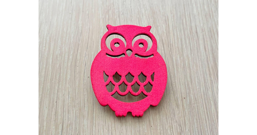 Vintage Owl Brooch Pink Wood Cutout Pin Retro Animal Jewelry Gift Cute Kitsch 1970s Style