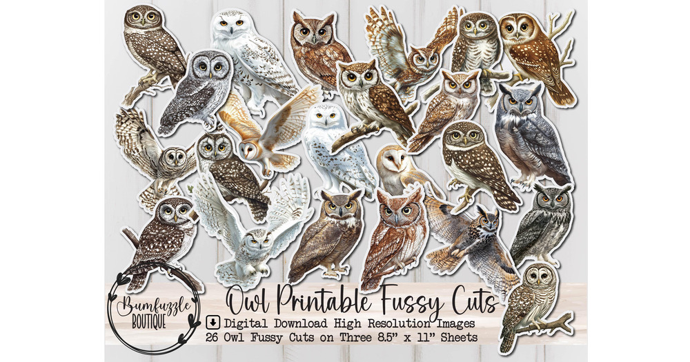 Owl Fussy Cut Ephemera Pages - 26 High Quality Printable Digital Download - Junk Journal Rustic Bird