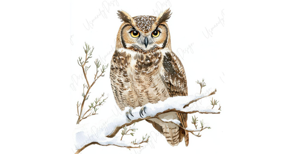 24 Watercolor Owl on Snowy Branch Clipart, Winter Bird, Woodland Animal Art, Junk Journal, Printable