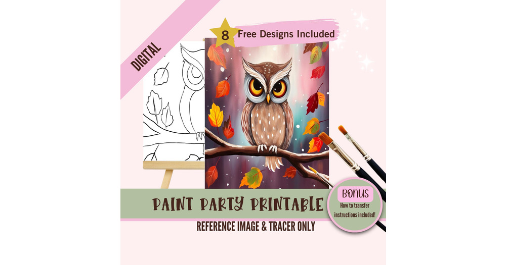 Fall Owl Paint Party Printable, DIY Autumn Art Kit for Kids, Forest Animal Painting Template with Le
