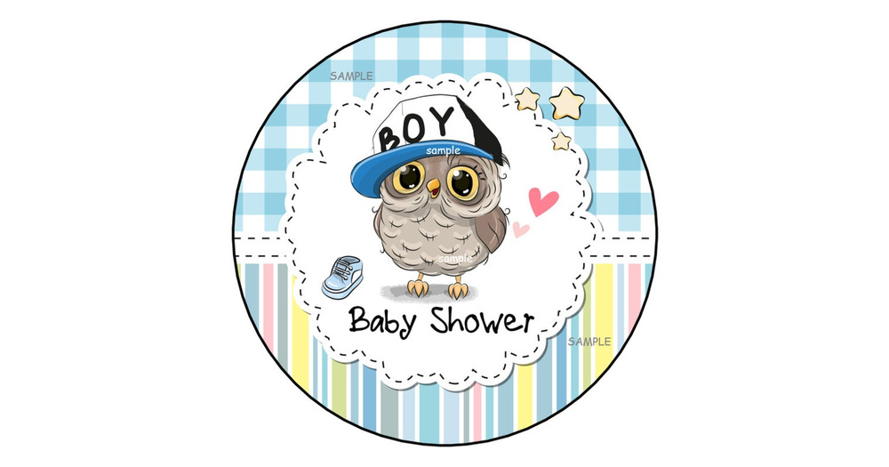 12 Cute Owl Baby Shower Stickers, Favor Labels, Gift Tags, 2.5", Round, Baby Boy, Blue