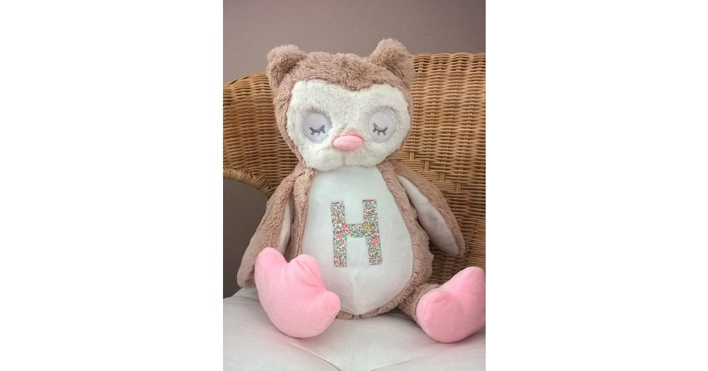 Personalised Owl soft toy, Liberty fabric, pyjama / nightdress case, personalised gift, christening