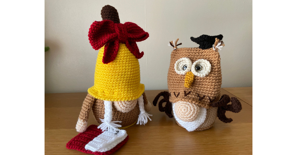School Teacher/Pupil Owl Gnome and School Bell Gnome Handmade Gift
