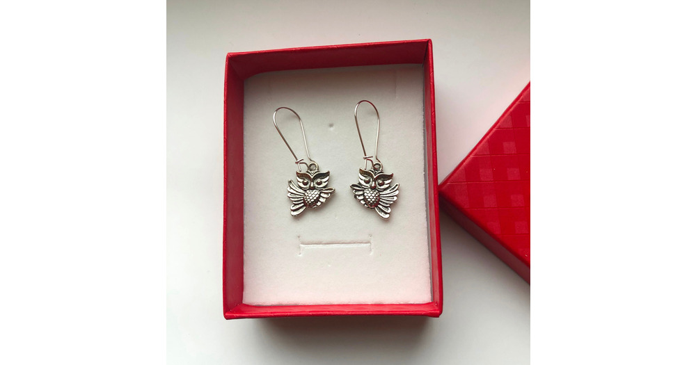 Owl Earrings with Silver Plated Kidney Ear Wires Small Silver Plated Owl Charms Two sided Owls Happy