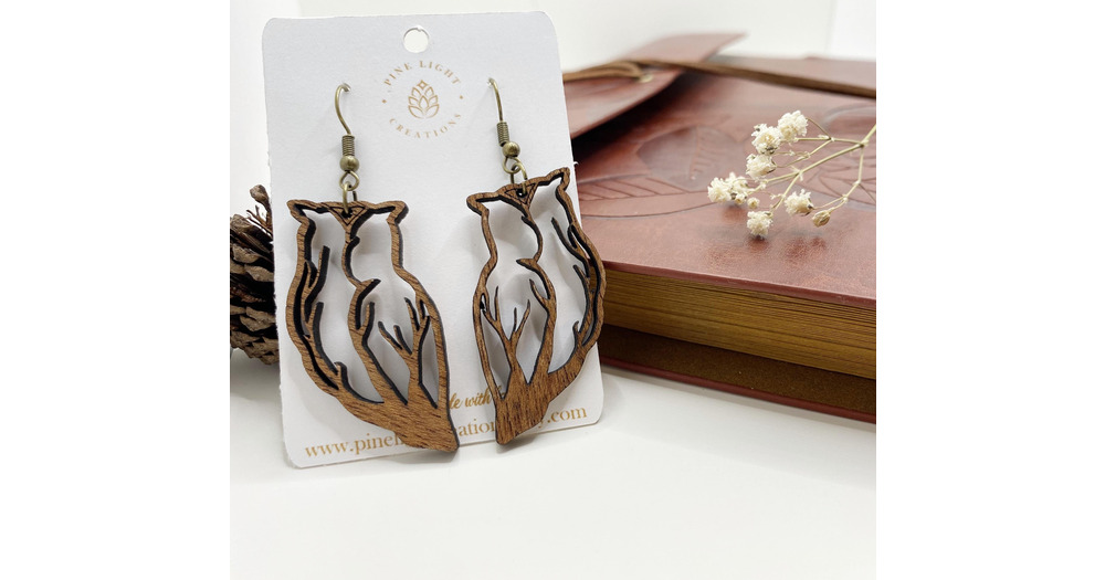 Mahogany Wood Owl Earrings: Laser Cut Boho Dangle Earrings