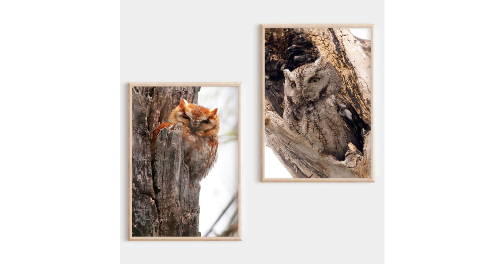 Owl Photo SET OF 2 | Two Screech Owl Photographs | Owl Print Gift Set | Rustic Photography Prints |