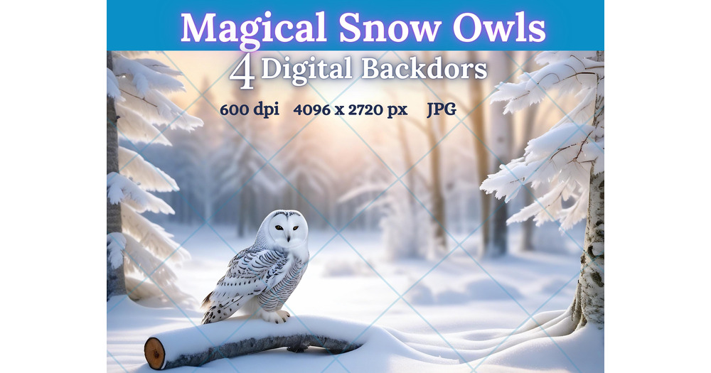Snowy Owl Digital Backdrop Bundle: Winter Forest Scene (600 dpi)