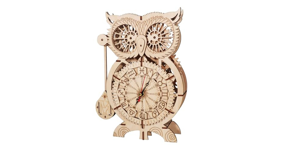 Music Park 3D Wooden Puzzles for Adults Owl Clock Mechanical Model Kits to Build Handmade Craft Uniq