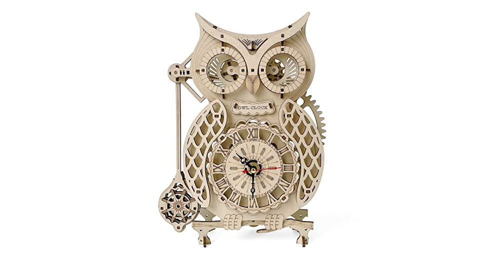 Hallisun 3D Wooden Puzzle Kits Owl Clock Model, DIY Mechanical Model Construction Kit Crafts Toy, De