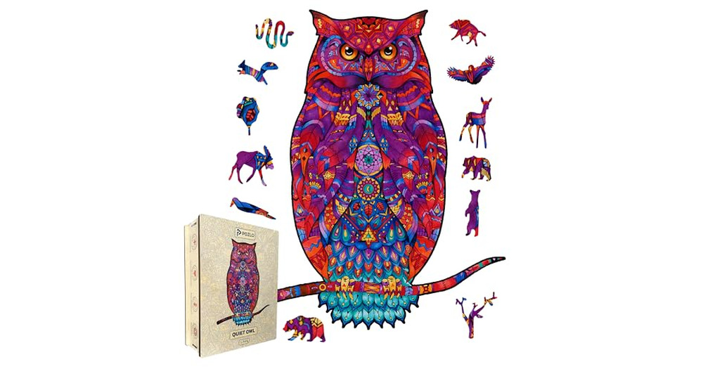 POZLO Quiet Owl Wood Puzzle for Adults - Unique Shaped Jigsaw Owl Wooden Puzzle - Large 221 Pieces -