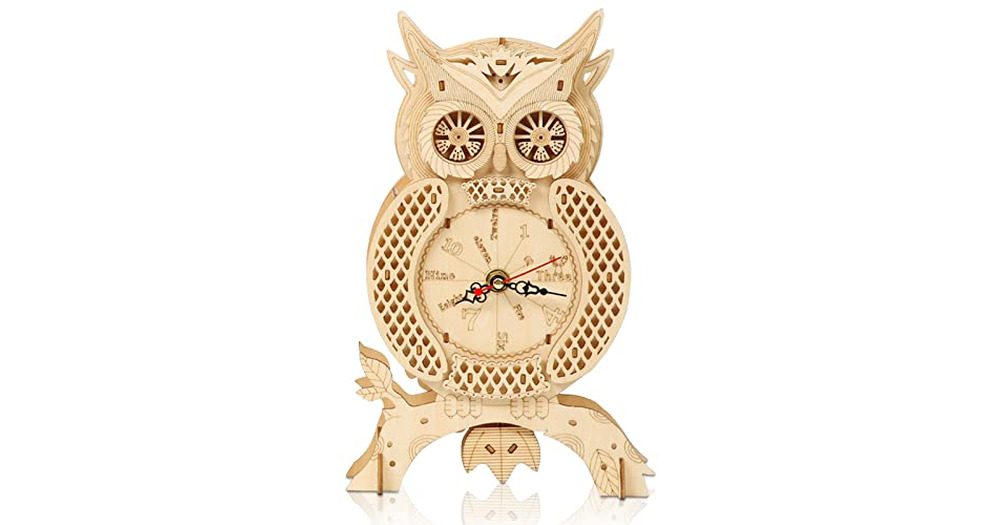 Hallisun 3D Wooden Puzzle, Clock Model Kits Gift for Adults, DIY Mechanical Model Building Kit, Owl