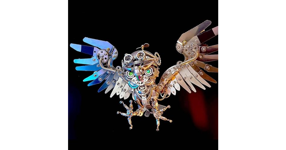 3D Metal Puzzle for Adults, Steampunk Owl Model Kit with Goggles & Light | Mechanical Stainless
