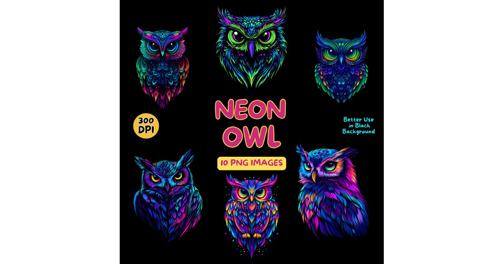 Neon Owl Digital Art - Neon Owl PNG - Neon Owl Clipart - Colorful Owl - Commercial Use Illustrations