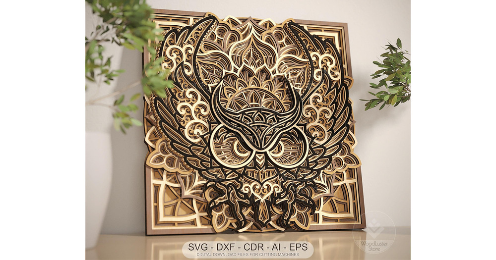 Owl Mandala Layered SVG: Laser Cut Wood Decor, Cricut, Glowforge (Digital Download
