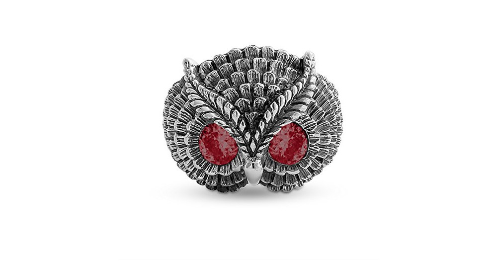 AZAGGI Sterling Silver Handcrafted Owl Ring with Red Eyes (8)