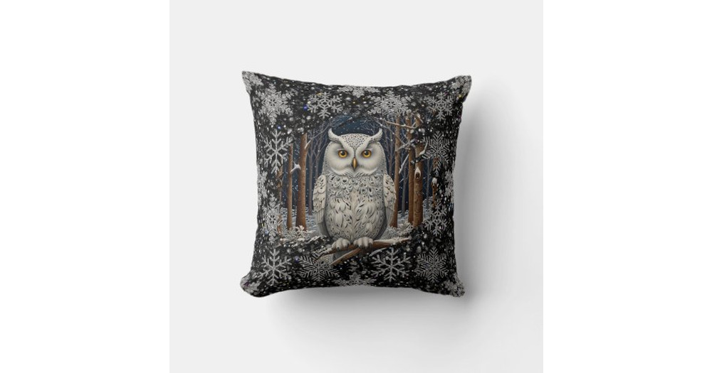 Elegant Christmas white owl woodland winter forest Throw Pillow