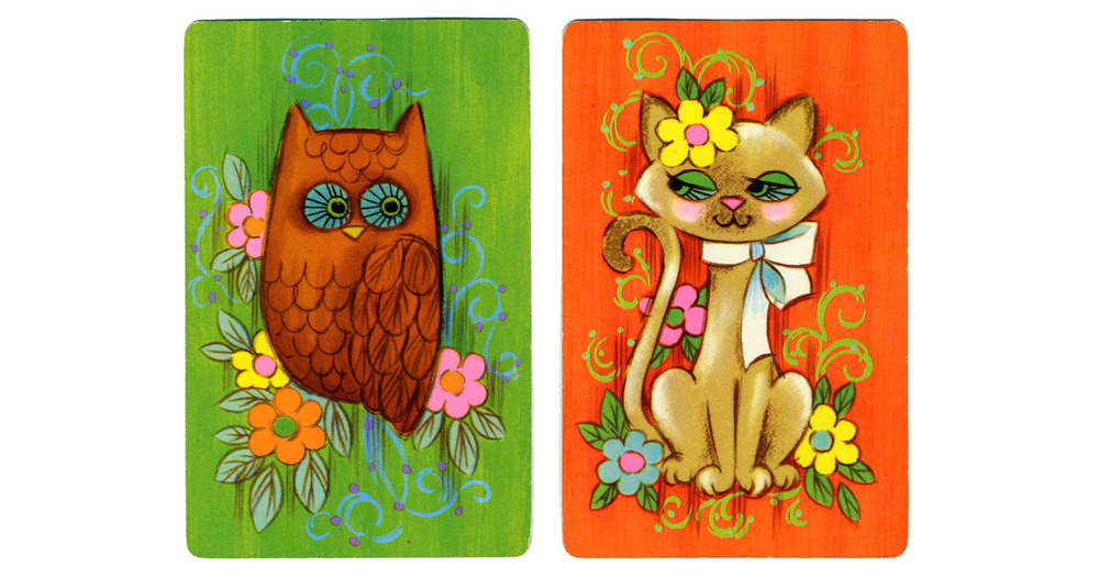 The OWL & The PUSSYCAT (2) Vintage Single Swap Playing Cards Paper Ephemera