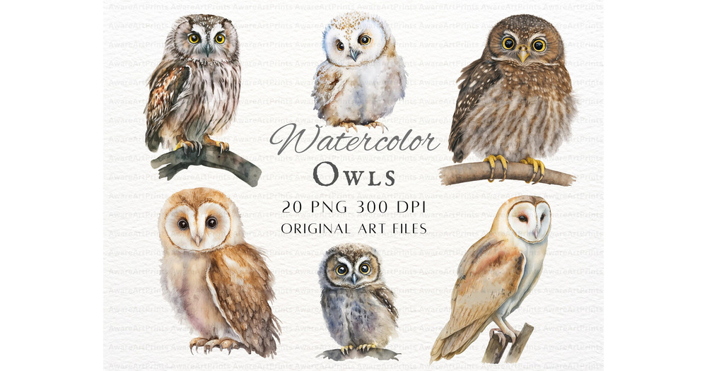 Watercolor Owl 20pc PNG & JPEG Bundle | Watercolor Owl PNG | Owl Art | Owl Commercial Use | Cute