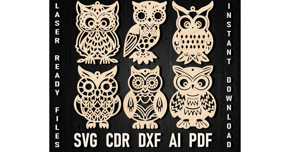 Svg Owl Christmas Ornaments Files for Laser Cutting, Glowforge and other machines Dxf Cdr for Laser