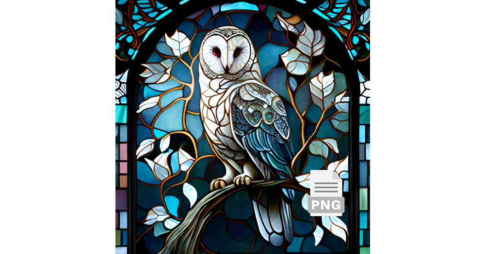 Owl Stained Glass Sublimation Designs, Stain Glass Pattern, Faux Stained Glass PNG, T-Shirt Designs,