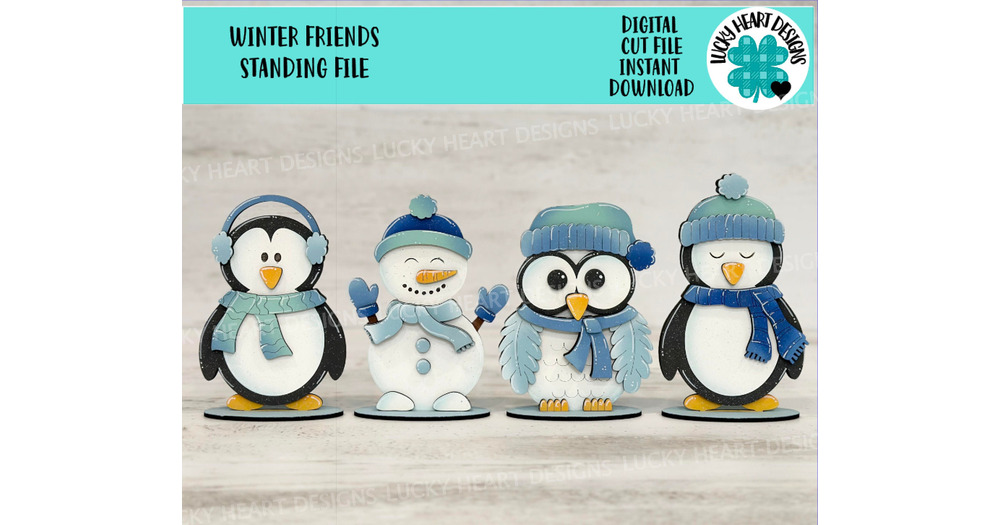 Winter Friends Standing File SVG, Glowforge, Penguin, Owl, Snowman, Winter Tiered Tray LuckyHeartDes