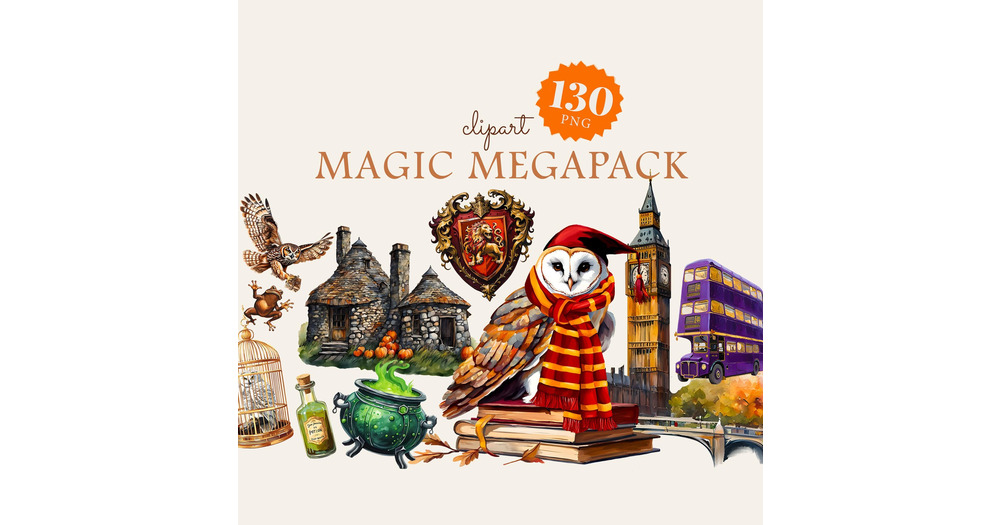 Magic Megapack: Academy Clipart, Watercolor Owls, Houses, Potions (PNG Digital Download)