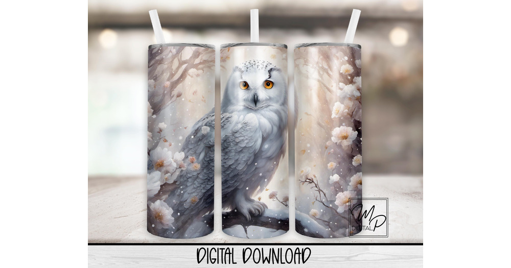 White Owl 20 oz Skinny Tumbler Wrap Sublimation Design, Instant Digital Download PNG Straight and Ta