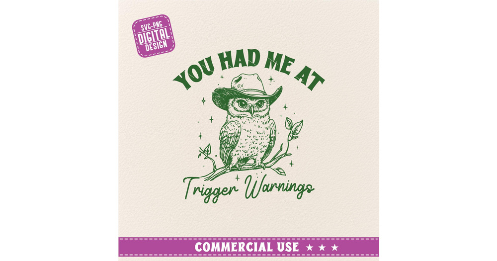 You Had Me At Trigger Warnings. Vintage Owl Svg, Owl Svg, Funny Sarcastic svg, Barn Owl Svg, Snowy O