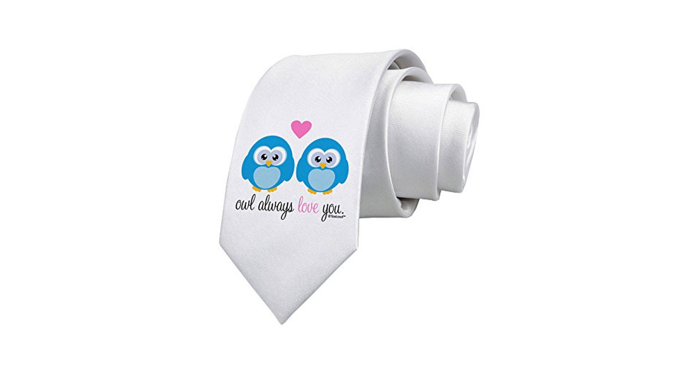 TOOLOUD Owl Always Love You - Blue Owls Printed White Neck Tie