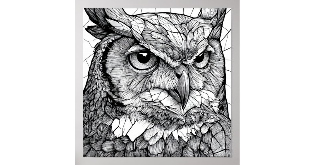 Gothic Cathedral Art: Majestic Owl Stained-Glass Poster
