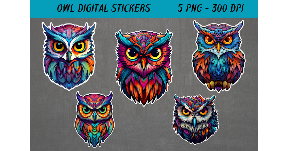 Fantasy Owl Stickers: Colorful PNG Clipart (Digital Download)