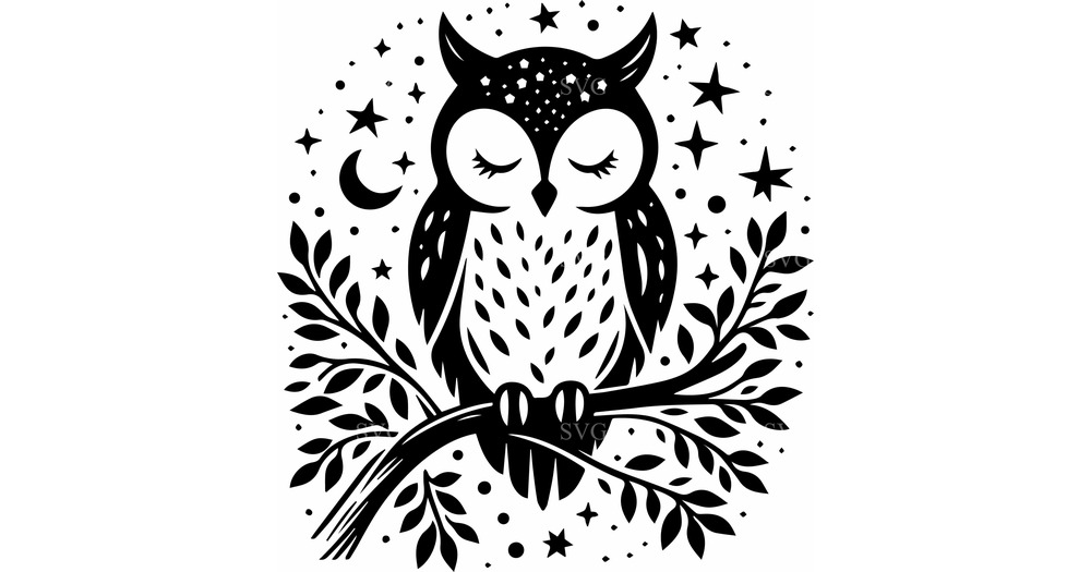 3 Owl night SVG – 3 Sleeping owl on branch cut file with stars and moon – Woodland silho